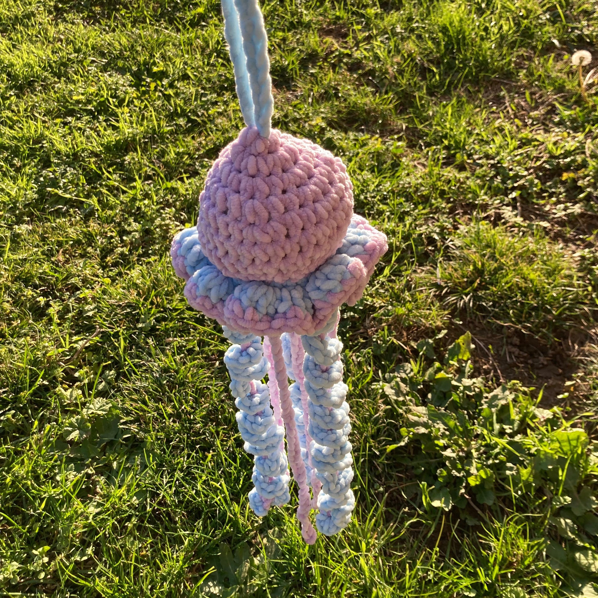 Adoptez cette méduse toute douce, entièrement crochetée à la main en laine chenille. Sa texture velours est irrésistiblement moelleuse, parfaite pour les câlins. Comme chaque pièce est façonnée individuellement, votre doudou aura sa propre personnalité : petites variations dans les expressions et les finitions qui le rendent unique.