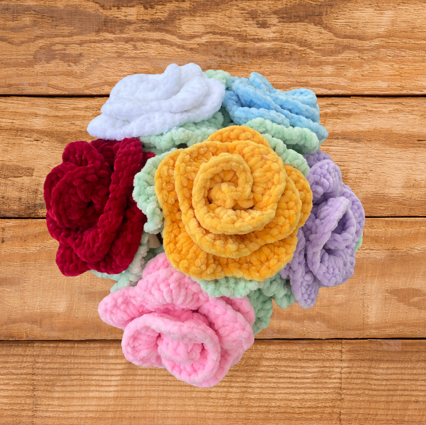 Crochetée à la main en France. Chaque rose est unique.